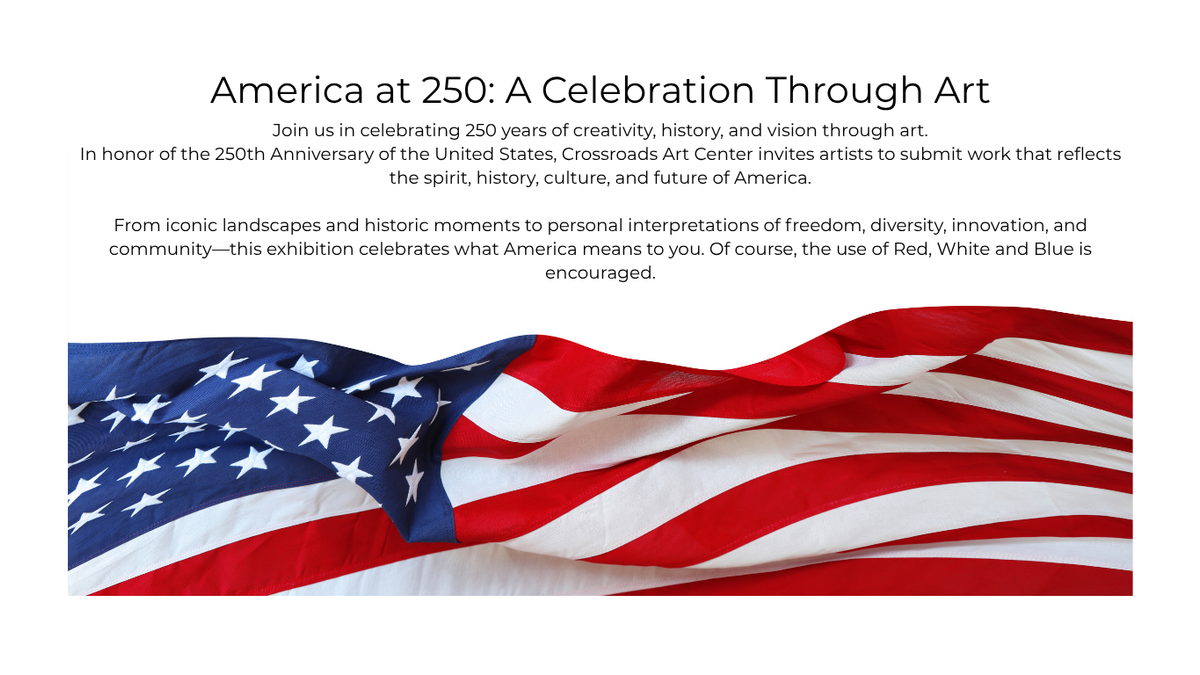 In honor of the 250th Anniversary of the United States, Crossroads Art Center invites artists to submit work that reflects the spirit, history, culture, and future of America.