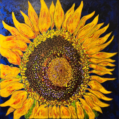 Bold, bright colors using acrylics, oils and mixed mediums are dominant in her artwork. Lots of layers and textures are obvious. Themes can be nature related from whimsical to abstract. Debbie has worked with clay sculpting and more recently painting on canvas and other objects including furniture.