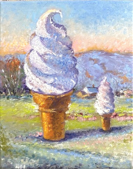 Our favorite thing at McDonalds is the Vanilla Soft Serve Cone. Here is my version inspired by Claude Monet's White Frost, Sunrise, painted in 1889.