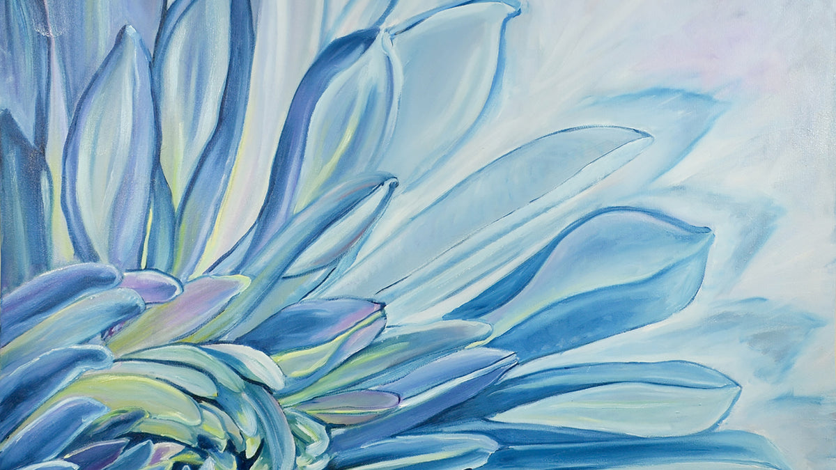 Each painting takes days or weeks to complete as she applies layers of paint onto the canvas, one layer drying before she continues with the next phase, often times working on multiple paintings at the same time.