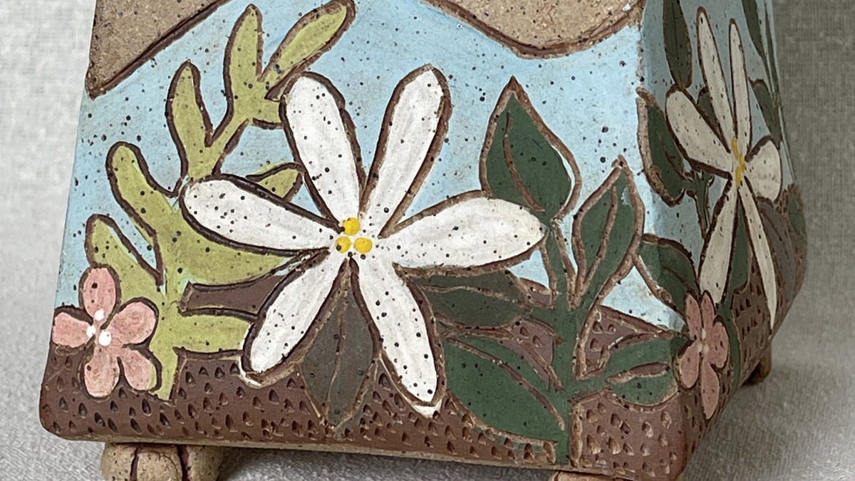 As I continue my journey of creating with clay, my love of nature informs the surface decoration and my fascination with sculpting adds character and quirkiness. I enjoy combining both facets in my most recent artwork.