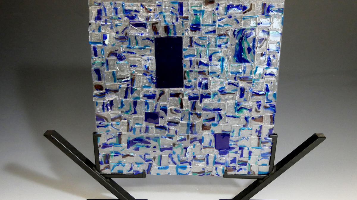 After retiring, she took her first courses in Fused Glass/Warm Glass at the Visual Arts Center, and then expanded her knowledge and techniques with courses at Arrowmont Arts Camp, Warm Glass studios in North Carolina, Vitrum Studios in Maryland, and Weisser Glass in Washington.