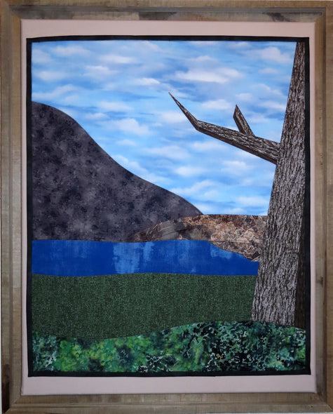 Blue Mountain Lake is a quilted collage & appliqué piece. It is inspired by a tranquil mountain lake in the Catskills - it instantly makes me calm when I an in this atmosphere.