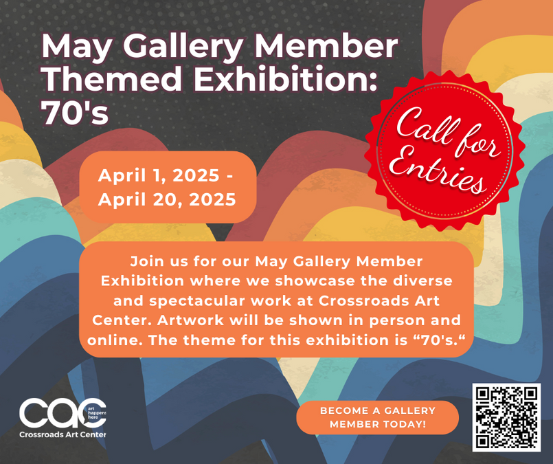 Crossroads Art Center invites artists to submit works for an exciting and nostalgic exhibition celebrating "The 70’s." We’re looking for art that captures the vibrant spirit, culture, and aesthetic of this groovy decade—think disco fever, bold patterns, social movements, and everything in between!