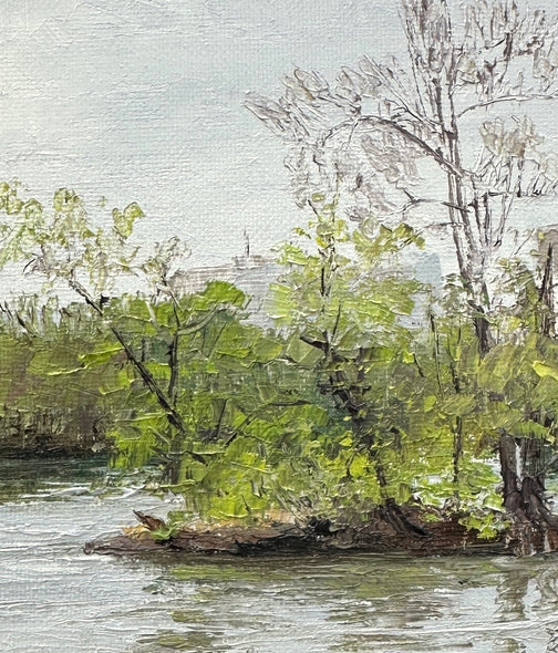 Part of a series on views of this island that is across from Tredegar Iron Works aka, the Civil War Museum in Richmond, VA. View of the island on April 9, 2024. An overcast day in early spring.