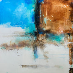 His paintings vary from heavily textured pieces, to oil and cold wax works with translucent layers and subtle textures, to paintings with multiple layers of washes to achieve atmospheric qualities.