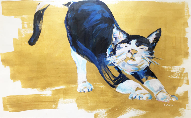 Dee Justin Title: Stretch Dee Justin $595.00 Default Title - $595.00 This product is currently not for sale online please contact us for more information. Dee Justin Stretch Acrylic on Gold Gesso on Paper 27" x 39" Framed $595 Collection: View Collection