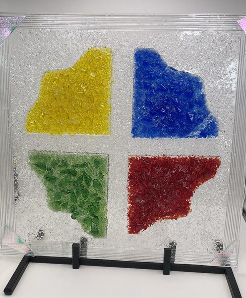 Gail Perry #33 Title: Happy and Bright Gail Perry $89.00 Default Title - $89.00 QTY Add to Cart Gail Perry Happy and Bright Fused Glass, Metal Stand Included 9 x 9" $89 Collection: View Collection