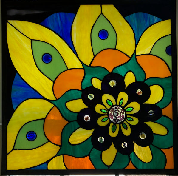 Sue Lee Title: Chakra Flower Sue Lee $775.00 Default Title - $775.00 This product is currently not for sale online please contact us for more information. Sue Lee Chakra Flower Stained Glass 24" x 24" x .5" $875, Sale $775 Collection: View Collection